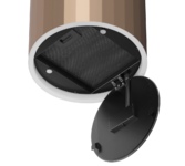 Вытяжка Maunfeld Adelaide 39 Isla в золотом цвете — современное сочетание стиля и функциональности. Она имеет цилиндрическую форму с рельефными полосами и стеклянной панелью управления, что придает ей элегантный вид, подходящий для любой современной кухни. Прибор предлагает два режима работы: отвод воздуха (при подключении к системе вентиляции) и рециркуляция (с использованием угольного фильтра). Управление вытяжкой осуществляется жестами руки или с помощью пульта дистанционного управления, что делает ее использование удобным и интуитивным. Ключевые преимущества: Бесконтактное электронное управление Островной дизайн Два режима работы