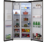 INVERTER; NoFrost; Side-by-side; Автоматический ЛЁДОГЕНЕРАТОР на двери: кубики льда/колотый лед/диспенсер для воды; ШхГхВ: 911х706х1780 мм; V=618/541 л (372л/169л); Класс A+; Фреон R600a; Клим. кл. SN, T; 42 дБ; LED освещение. Электронный дисплей. Нерж.Цвет графитовый.