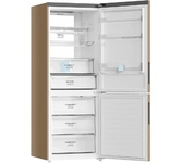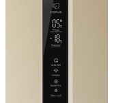 Холодильник Mainfeld MFF200NFBG — двухкамерная модель, выполненная в бежевом цвете и имеющая габариты 59,5×200×63,5 см., такое устройство идеально будет смотреться в любом кухонном интерьере. Возможность перевешивания двери позволяет подстроить холодильную камеру. Открывая дверцу, она больше не будет закрывать доступ к нужным поверхностям и не доставит неудобств при эксплуатации. Если требуется надолго отлучиться из дома или квартиры, вы можете включить режим «Отпуск». Во время ее действия холодильное отделение останавливается, работает только морозильная камера. Общий полезный объем холодильника Maunfeld MFF200NFBG составляет 351 л, из которых 257 л приходится на холодильную камеру, а 94 л — на морозильную. Такой объем позволяет вмещать достаточное количество продуктов, поэтому данная модель отлично подойдет для большой семьи. Морозилка предусматривает 3 ящика и способна замораживать продукты до 4,5 кг. Наружная сенсорная панель устанавливает температуру и контролирует ее уровень, не открывая дв