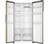 Количество камер: двухкамерный. Расположение морозильной камеры: сбоку. Тип управления: электронное. Класс энергопотребления: A++. Система размораживания: No Frost. Общий объем холодильника: 595. Общий объем холодильной камеры: 390. Общий объем морозильной камеры: 205. Уровень шума: 42. Количество компрессоров: один. Хранение при отключении питания: 8. Мощность замораживания: 10. Количество полок: 4. Количество ящиков: 2. Материал полок: стекло. Зона свежести: есть. Количество полок: 4. Система размораживания: No Frost. Тип: Холодильник. Полезный объем холодильника: 570. Полезный объем холодильной камеры: 372. Полезный объем морозильной камеры: 198. Хладагент: R600a. Количество ящиков: 2. Вес (нетто): 93. Количество дверей: 2. Тип компрессора: инверторный. Габариты упаковки (ед) ДхШхВ: 0.971x0.72x1.87. Вес упаковки (ед): 93. Страна производства: Китай. Инверторный компрессор: есть. Количество полок на дверце: 8. Наличие морозильной камеры: есть. Температура морозильной камеры max: -22. Температура морозильной