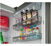Холодильник Maunfeld MFF177NFWE — это высококачественное и функциональное устройство Side by Side для хранения продуктов. Полезный объем 430 литров, из них холодильное отделение — 261 л и морозильное — 169 л. Прибор имеет современный и элегантный дизайн, который станет привлекательным дополнением к вашей кухне. Выполнен в белом цвете и интегрированными ручками. Имеет класс энергопотребления А+. Система охлаждения No Frost обеспечивает оптимальные условия хранения для различных видов продуктов и помогает им оставаться свежими и дольше сохранять свои качества. При помощи вентиляции из рабочей камеры выводится лишняя влага, поэтому иней и лед не образуются. Размораживание производится автоматически. При помощи дисплея легко настроить желаемую температуру. В холодильной и морозильной камерах расположено по три переставляемых полки и по одной стационарной. В холодильнике предусмотрено 2 ящика для овощей и фруктов, в морозилке — два контейнера для замороженных продуктов. На каждой две