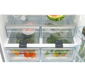 Двухкамерный холодильник с функциями BioFresh и NoFrost Особенности: Функция для хранения овощей и фруктов Fruit & Vegetable-Safe Хрустящий салат или клубника: самые нежные продукты заслуживают особого места, чтобы дольше оставаться свежими: контейнеры BioFresh. В контейнере для овощей и фруктов «Fruit & Vegetable-Safe» температура близка к 0 °C. В сочетании с постоянно преобладающей в нём влажностью, благодаря плотному закрытию, неупакованные фрукты и овощи чувствуют себя здесь особенно хорошо. Вам не нужно ничего настраивать. NoFrost Открывая морозильное отделение, вы хотите видеть замороженные продукты, а никак не лёд или иней. NoFrost защищает морозильную камеру от нежелательного обледенения, расходующего много энергии и порой стоящего достаточно дорого. NoFrost означает: никакого больше утомительного и продолжительного размораживания морозильного отделения, больше времени для других дел - и экономия денег. DuoCooling Благодаря двум полностью раздельным контурам охлаждения DuoCooling обеспечивает отсутств