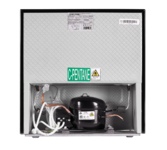 Однокамерный холодильник с морозильным отделением • цвет Черная нержавеющая сталь • LED освещение • механическое управление • класс энергоэффективности А+ • габариты 85x58x62см • объем 150/116/34л