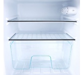 Общий объем 155 л/ Ширина – 46 см/ Количество камер - 2/ Объем холодильного отделения - 72 л/ Объем морозильного отделения - 83 л/ Уровень шума - 39 дБ/ Тип управления - механический/ Подсветка/ Материал полок - стекло/ Класс энергопотребления - А+/ Разморозка - ручная/ Хладогент - R600A/ Штур питания - 180 см/