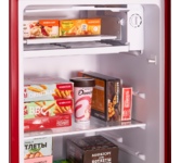 Холодильник Maunfeld MFF83RR - это идеальное сочетание функциональности и стильного дизайна. Общий объем холодильника составляет 92 литра, из которых 85 литров представляют собой полезный объем для хранения продуктов. Внутренняя подсветка на лампе накаливания обеспечивает яркое и равномерное освещение, что позволяет легко найти необходимые продукты. Дверной упор расположен справа, но есть возможность его перевешивания, что делает использование холодильника удобным для любой планировки кухни. Управление холодильником осуществляется механическими поворотными переключателями, что обеспечивает простоту и надежность работы. Регулировка и контроль температуры также осуществляются механическим способом. Система охлаждения статическая, что обеспечивает равномерное распределение холода по всему объему холодильника. Внутри камеры расположены две полки из закаленного стекла, высоту которых можно регулировать в зависимости от размеров хранимых продуктов. Также есть один ящик для овощей и фруктов и три полки на двери