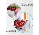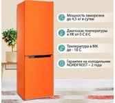 (ВхШхГ)188х57х63см. Цвет оранжевый.Общий объем, л 320.Объем холодильной камеры (ХК), л205.Объем морозильной камеры (МК), л 115.Вес Нетто, кг 63.Класс энергоэффективности A+.Температура в ХК0°С...+8°С.Количество полок ХК 4.Тип полок в ХК закаленное стекло.Ящик для овощей ХК1.Освещение в ХК LED-подсветка.Система оттаивания ХК автоматическая (капельная).Полки на двери ХК 3.Температура в МК не выше -18°С.Количество выдвижных ящиков в МК 3.Лоток для ягод в МК1.Система оттаивания МКручная.Производительность замораживания, кг/сут4,5.Хладагент R600a (изобутан).Суточный расход электроэнергии, кВт.час0,827.Уровень шума, дБ40.Перенавешиваемые двери. Ручки интегрированные горизонтальные.Испаритель запененный.