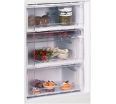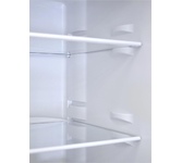 Двухдверный холодильник серии COMBI, морозильная камера снизу. No Frost, полезный объем 237 (182+55) литров, А+ класс, 42 дБ, R600а, N-ST, LED подсветка, потребление энергии 256 кВт/год, мощность замораживания 2,5 кг/сутки. Холодильное отделение: 3 полки из стекла, 3 боковых полки, 1 большой ящик для овощей и фруктов. Морозильное отделение: 2 выдвижных ящика, 1 лоток с легким доступом. Вес нетто и брутто 51 и 55 кг, цвет белый. Регулируемые ножки, перенавешиваемые двери, интегрированные ручки.
