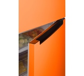 2-камерный, 353 л (ХК 238 л + МК 115 л), класс А+, LED-освещение, МК внизу, 5 полок стекло, выдвижной овощной ящик, 3 отделения в МК, 1 лоток для ягод, автоматическая система оттаивания, 203х57х62,5 см, цвет: оранжевый матовый