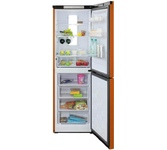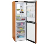 Двухкамерный холодильник с нижней морозильной камерой; Цвет: Оранжевый; Габариты ВхШхГ: 192х60х65см; Общий объем: 340л; Система Full No Frost; Система Air Flow; Класс энергоэффективности: A; Возможность перевешивания двери; Автономное сохранение холода: 17 ч; Минимальная температура в морозильной камере: -18 °C; Управление: LED дисплей; Количество ящиков в морозильном отделении: 4; Объем холодильной камеры: 180 л; Объем морозильной камеры: 130 л; Материал полок: стекло/пластик; Количество ящиков в холодильном отделении: 1; Суточный расход электроэнергии, при температуре окружающего воздуха 24°C: 1.06 кВтч; Количество полок в холодильном отделении: 4; Температура в отделении для хранения свежих пищевых продуктов: От 0 до 8 °C; Мощность замораживания: 5 кг/сутки; Размораживание морозильной камеры: No Frost; Климатический класс: N,ST; Максимальный уровень шума: 43 дБ; Количество компрессоров: 1; Освещение: LED; Комплектация Масленка, разделитель в отделении для овощей, полка для бутылок