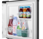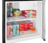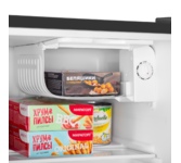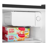 Габариты (ВхШхГ) 87х48х60,5см. Общий объем: 115л; Холодильная камера: 88л; Морозильная камера: 27л.; Количество камер: однокамерный; Расположение морозильной камеры: Верхнее; Компрессор: 1; Управление: механическое; Температура в режиме хранения в морозильной камере (отделение "две звезды"): не выше,°C: -12; Освещение: LED; Класс энергоэффективности: A; Ручная разморозка морозильной камеры; Светодиодная лампа освещения; Перенавешиваемые дверцы; Регулируемые по высоте ножки; Уровень шума: 40дБ; Цвет: Черный