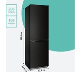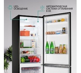 2-камерный, Общий объем 310 л, объем холодильной камеры 205 л, объем морозильной камеры 105 л, класс А+, LED-освещение, МК внизу, 4 полки стекло, 2 овощных ящика, 3 отделения в МК, сосуд для ягод 1, система NO FROST , , 188х61х62,5 см, цвет: черный матов