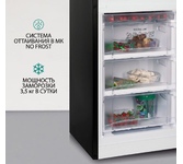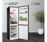 Двухкамерный холодильник с нижним расположением морозильной камеры Общие данные: Размеры: высота (см): 188.4 ширина (см): 57.4 глубина (см): 62.5 Общий объем/ Полезный объем: Холодильника (л): 310/279 Холодильной камеры (л): 205/204 Морозильной камеры (л): 105/75 Тип управления: механический Класс энергопотребления: A+ Климатический класс: N-ST (от +16°С до +38°С) Количество компрессоров: 1 Годовое потребление энергии: 299 кВтч Цвет: черный матовый Холодильное отделение: 4 полки из закаленного стекла 3 полочки на дверце Автоматическое оттаивание Экономичное LED освещение Температура: 0°С...+8°С Большой выдвижной ящик для овощей Морозильное отделение: Система No Frost (Frost Free, Ноу Фрост) Сохранение температуры при отключении до -9 С: 10 ч Мощность замораживания: 3,5 кг/сутки Температура: не выше -18°С 3 ящика Лоток для ягод Дополнительная информация: Ламинированная внутренняя поверхность холодильника с антибактериальным покрытием Уровень шума: 41 дБ Хладагент: R600a Перенавешиваемые двери Испаритель запене