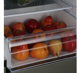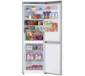 Двухкамерный холодильник с нижним расположением морозильной камерыОбщие данные:Размеры:высота (см): 186,8ширина (см): 59,5глубина (см): 62,9Общий объем/ Полезный объем: Холодильника (л): 338/324 Холодильной камеры (вкл. зону свежести) (л): 206/205 Морозильной камеры (л): 132/119Тип управления: электронныйКласс энергопотребления: A+Климатический класс: N-ST (от +16°С до +38°С)Количество компрессоров: 1Годовое потребление энергии: 292 кВтчЦвет: под нержавеющую стальХолодильное отделение:4 полки из закаленного стекла, 3 из них переставляемые по высоте4 полки на дверцеОтделение Super Fresh BoxСветодиодное освещениеТемпература хранения свежих продуктов: от 0 до +8 °CСредняя температура хранения свежих продуктов: +4 °CСосуды для овощей или фруктов: 1Морозильное отделение:Номинальное время повышения температуры пищевых продуктов в морозильном отделении от минус 18 °C до минус 9