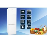 INVERTER NoFrost; COMBI; ШхГхВ: 595х655х2000мм; V=380/351 л (257л/94л); Класс A++; 4 полки; Фреон R600a; Полка для вина; 2 выдвижных ящика. Отделение с рег. ур. влажности;. кл.к. SN-T; 42 дБ; Цвет: белое мерцающее стекло
