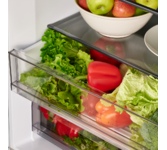 Комбинированный холодильник-морозильник с EasyFresh и NoFrost Особенности: EasyFresh Наш контейнер EasyFresh гарантирует свежесть продуктов в вашем доме, как на рынке. Неупакованные фрукты, овощи или плоды: здесь всё хранится оптимально. Благодаря плотному закрытию контейнера под воздействием продуктов в нём повышается влажность воздуха. Таким образом, продукты остаются свежими долгое время. NoFrost Открывая морозильное отделение, вы хотите видеть замороженные продукты, а никак не лёд или иней. NoFrost защищает морозильную камеру от нежелательного обледенения, расходующего много энергии и порой стоящего достаточно дорого. NoFrost означает: никакого больше утомительного и продолжительного размораживания морозильного отделения, больше времени для других дел - и экономия денег. DuoCooling Благодаря двум полностью раздельным контурам охлаждения DuoCooling обеспечивает отсутствие воздухообмена между холодильным и морозильным отделениями. Продукты питания не засыхают,а запах не передаётся. А это значит: меньше выбр