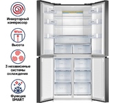 Холодильник Maunfeld MFF183NFSBE – это комбинированный холодильник с морозильной камерой. Это отдельностоящий прибор с двумя камерами и четырьмя дверями, что обеспечивает большую вместимость и удобство использования. Модель относится к классу энергопотребления A++, что говорит о его высокой энергоэффективности. Дизайн холодильника выполнен в стиле Модерн, что делает его идеальным дополнением к любому современному интерьеру. Цвет черной нержавеющей стали придает ему элегантный и современный вид. Фасад из стекла добавляет эстетическую привлекательность, а внутренняя подсветка светодиодным освещением обеспечивает яркое и равномерное освещение. Управление холодильником осуществляется с помощью электронного управления и сенсорных переключателей, что обеспечивает легкость и удобство использования. На дисплее отображается текущая температура внутри холодильника и морозильника, а также другая важная информация. Встроенная электронная система регулировки и контроля температуры позволяет поддерживать оптим