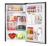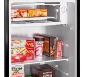 Холодильник Maunfeld MFF83RB - это прекрасное сочетание функциональности и стильного дизайна. Это отдельностоящее устройство с одной камерой и одной дверью, что делает его идеальным для небольших кухонь или офисов. Стильный черный цвет и эмалевый фасад придают ему современный и элегантный вид. Эта модель отличается высокой энергоэффективностью, обеспечивая экономию электроэнергии. Она относится к классу энергопотребления A+, что делает ее очень экономичной. Внутренний объем холодильника составляет 92 литра, из которых 85 литров - это полезный объем, предоставляющий достаточно места для хранения продуктов. Управление холодильником осуществляется с помощью механического переключателя. Регулировка и контроль температуры также осуществляются механически, что обеспечивает простоту и удобство использования. Внутренняя подсветка обеспечивается лампой накаливания, что позволяет легко найти нужные продукты даже в темное время суток. Внутри холодильника есть две полки из закаленного стекла, которые можно р
