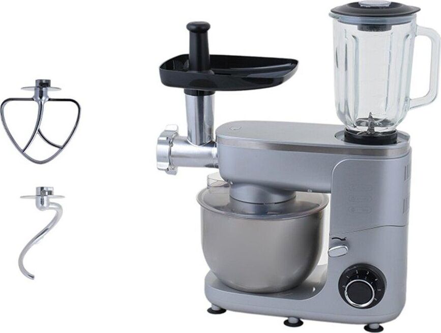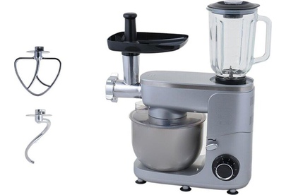 Максимальная мощность 1400 Вт Количество скоростей 6 Насадка-блендер, насадка-мясорубка Планетарное вращение Импульсный режим Объем чаши 5 л Количество насадок в комплекте 5 Цвет серебристый Материал лотка нержавеющая сталь Материал корпуса пластик Прорезиненные ножки Длина сетевого шнура 1 м Защитный обод, венчик для взбивания, лопатка для перемешивания, крюк для теста в комплекте Срок гарантии 24 мес.