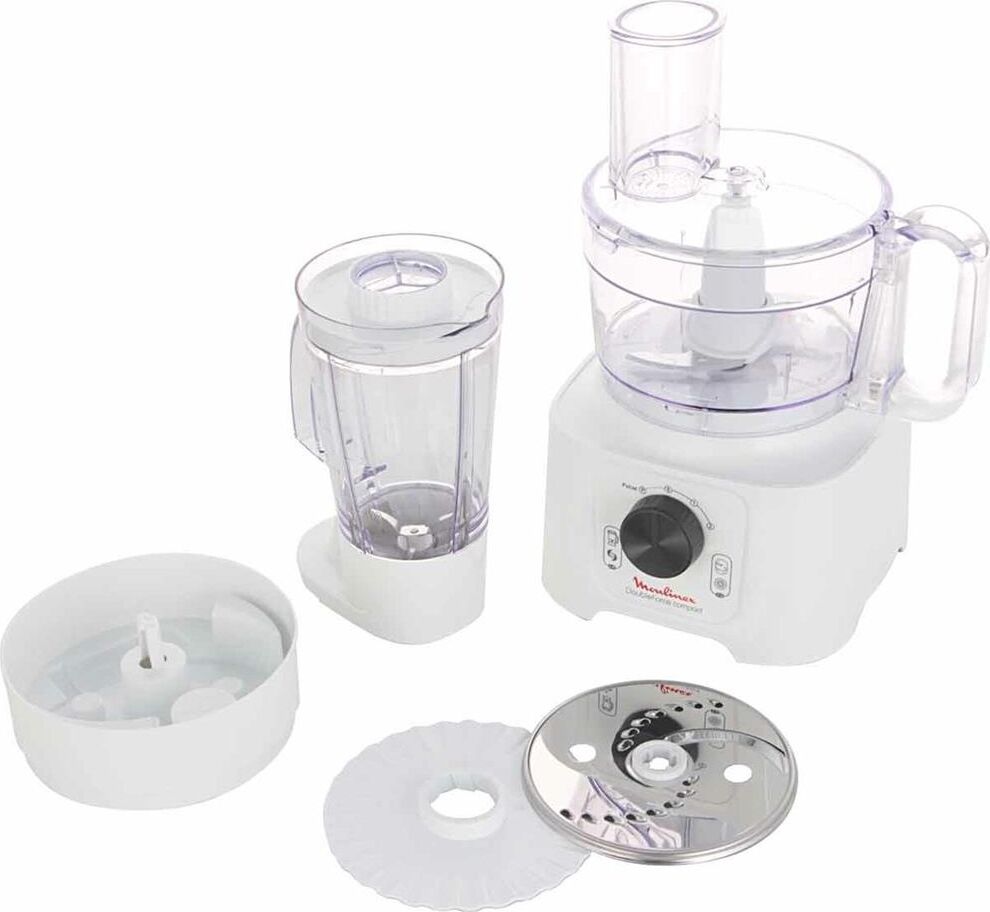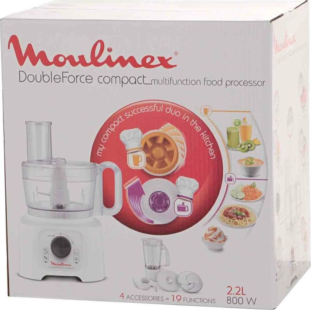 Материал корпуса пластик. Мощность 800 Вт. Управление механическое. Серия DoubleForce Compact. Цвет белый. Вес 2.83 кг. Насадки Стационарный блендер, Крупная терка, Шинковка. Тип кухонный комбайн. Объем чаши 2.2 л. Материал чаши Пластик. Количество скоростей 2. Функция Pulse Есть. Рубящий нож из нержавеющей стали. Чаша блендера Есть.