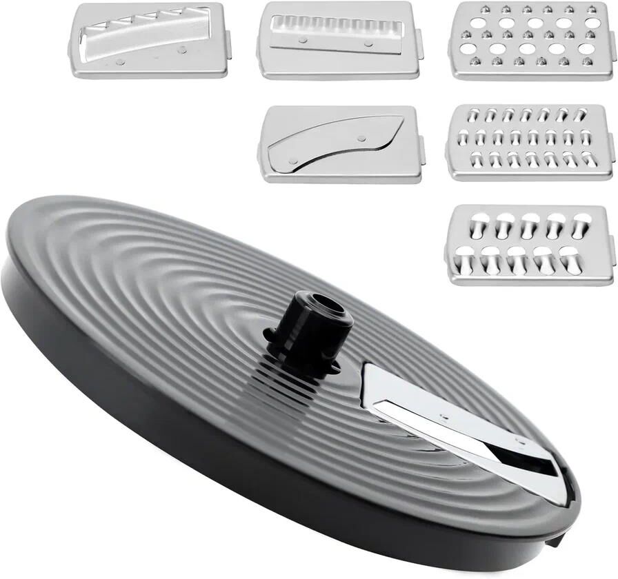 Кухонный комбайн с механическим управлением и мощностью 1000 Вт - это универсальный помощник на кухне. Работает от сети 220-240 В и оснащен двумя скоростями с импульсным режимом для точного контроля обработки продуктов. В комплекте три емкости: чаша комбайна (1,2 л), чаша блендера (1,5 л, стекло) и кофемолка (0,35 л). Корпус и чаши комбайна/кофемолки выполнены из пластика, а лезвия и нож для измельчения - из нержавеющей стали. Стильный черный цвет и нескользящие ножки обеспечивают устойчивость и эргономичность. Длина кабеля - 1,2 м. Особенности: импульсный режим, защита от брызг, легкая смена насадок и отсек для хранения режущих элементов. В комплект входят: основание с чашей, кофемолка, блендер, эмульгатор, ножи для измельчения и теста, пластина для лезвий, лопатка и набор из 7 лезвий (для нарезки ломтиков, для драников, картофеля фри и др.).