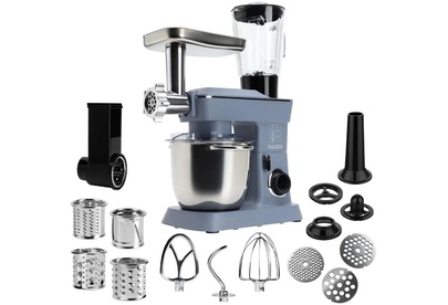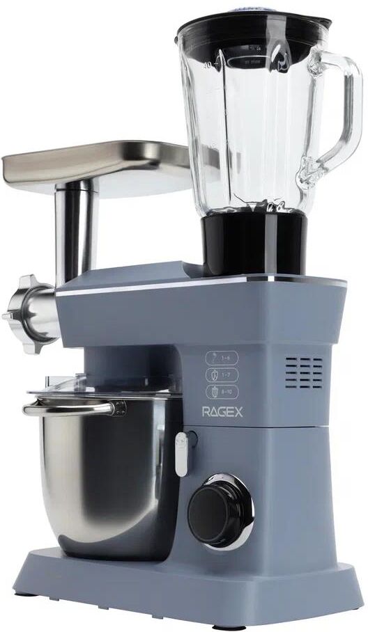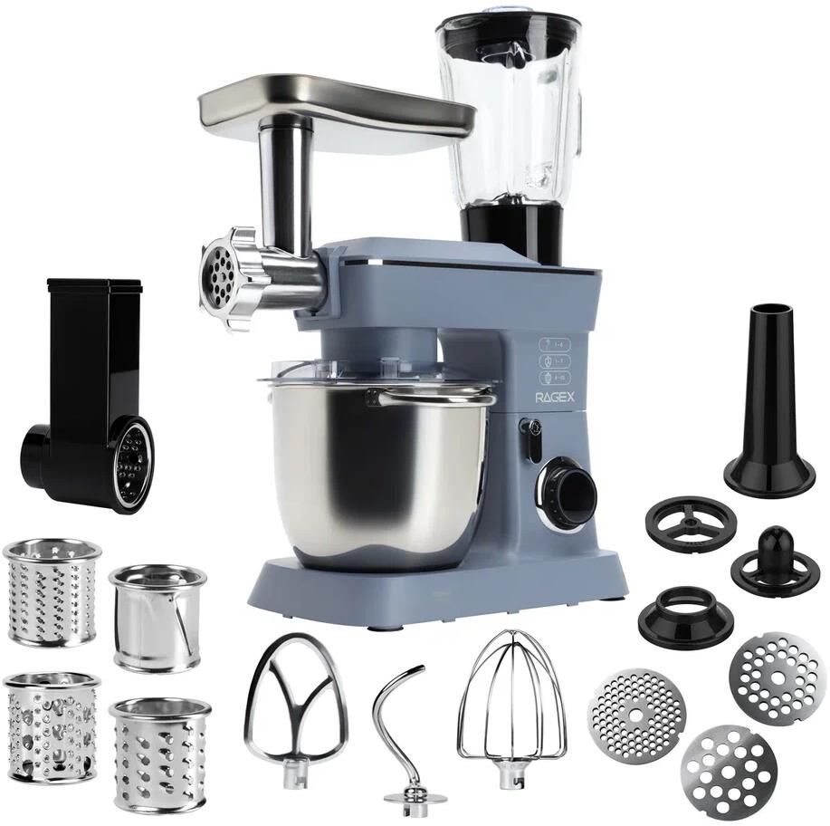 Кухонный комбайн R112-418 представляет собой многофункциональное устройство "14 в 1", предназначенное для выполнения широкого спектра кулинарных задач. Модель оснащена двигателем мощностью 1300 Вт, обеспечивающим эффективную работу с различными продуктами. Объем основной чаши составляет 4.5 литра, что позволяет обрабатывать значительные объемы ингредиентов. Комбайн работает от стандартной электрической сети 220-240 В, 50/60 Гц. В комплектацию входят разнообразные насадки и аксессуары, расширяющие функциональность устройства: ножи для измельчения, диски для нарезки ломтиками и шинковки, насадка для замешивания теста, венчик для взбивания, соковыжималка для цитрусовых, блендер, кофемолка, а также другие специализированные приспособления для выполнения 14 различных операций. Корпус выполнен в цвете "ледяной голубой".