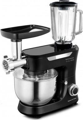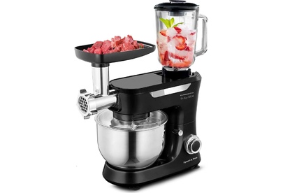 Кухонная машина Мощность: 1200 Вт Напряжение: 220-240В, 50/60Гц Объем чаши: 5л Объем блендера: 1,5л Кол-ва насадок: 12 Кол-во скоростей: 6 Импульсный режим (турбо): да Тип двигателя: AC (с медной обмоткой) Материал корпуса: ABS - пластик Материал чаши: нерж сталь SUS 304 Материал блендера: стекло