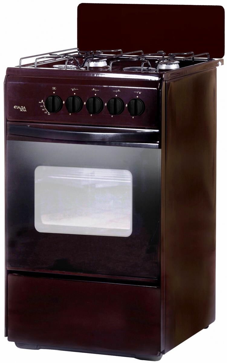 Габаритные размеры, см 50 х 60 х 85 * Тип плиты газовая * Цвет коричневый * Объем духовки 50л. — Газ-контроль горелок духовки — Двойное стекло дверцы духовки * Материал эмаль * 4-х горелочная, полный газ-контроль, щиток, проволочная решетка стола, хоз. отсек, решетка духовки, жаровня *