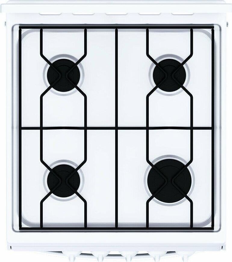 Габаритные размеры, см 50 х 60 х 85 * Тип плиты газовая * Цвет белый * Объем духовки 50л. — Газ-контроль горелок духовки — Двойное стекло дверцы духовки * Материал эмаль * 4-х горелочная, полный газ-контроль, щиток, проволочная решетка стола, хоз. отсек, решетка духовки, жаровня *