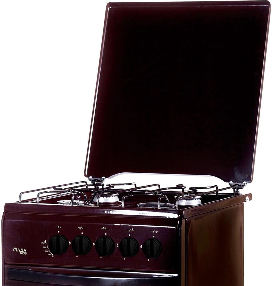 Габаритные размеры, см 50 х 60 х 85 * Цвет коричневый * Объем духовки 50л * — Газ-контроль горелок духовки, — Двойное стекло дверцы духовки * 4-х горелочная, металлическая крышка, газ-контроль горелки духовки, проволочная решетка стола, хоз. отсек, решетка, жаровня * ВЕС, КГ без упаковки, кг 32 *