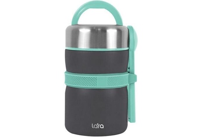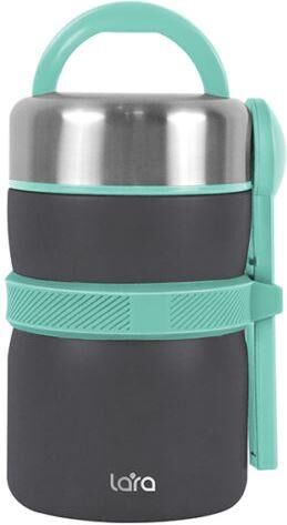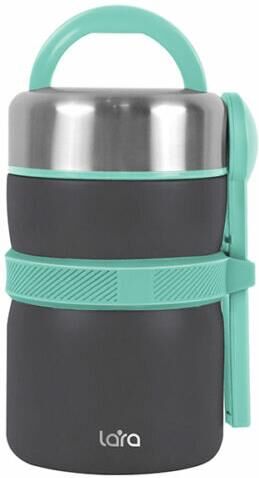 Объем 2,0 л. Материал - Нержавеющая сталь, Пластмасса. Особенности - Двойные стенки, Ложка и вилка в комплекте, Три контейнера для продуктов