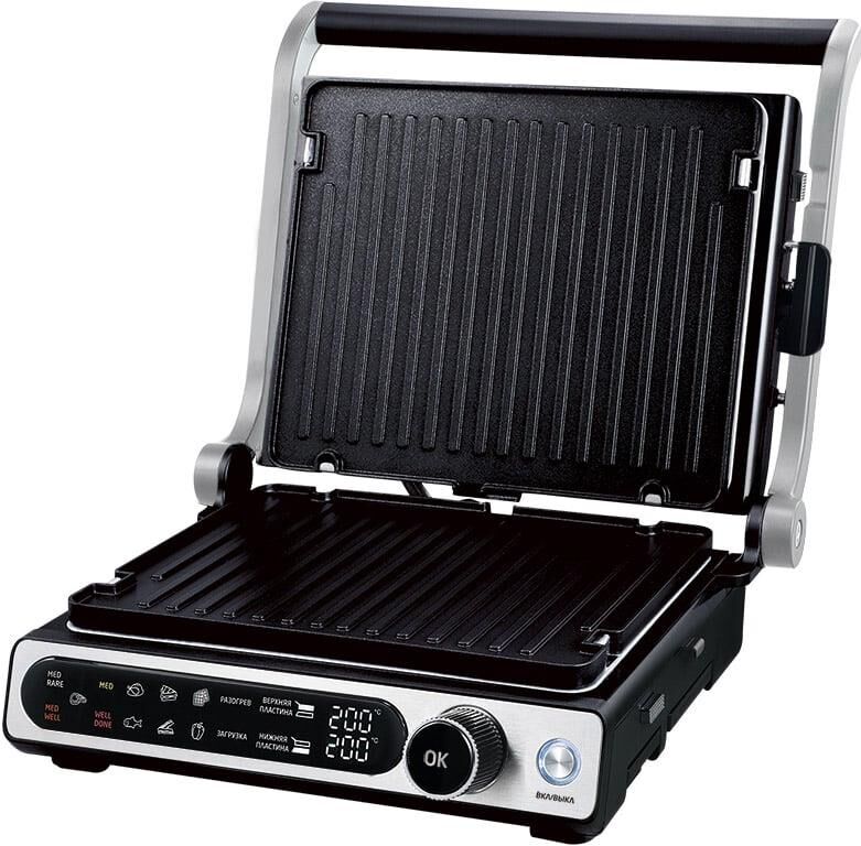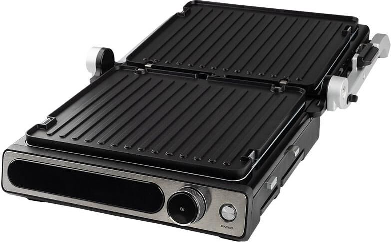 Мощность 1800 Вт Съемные двусторонние пластины "Universal Side": - рифлёная для стейков - гладкая для блинчиков и овощей Дополнительные пластины для выпекания вафель Размер пластин 28*23,5 см Сверхпрочное антипригарное покрытие TouchPro 7 10 автоматических программ 4 степени прожарки стейков Ручной режим Отдельная регулировка температуры для верхней и нижней пластины Максимальная температура нагрева пластин 230 градусов Дисплей Кнопка управления Поддон для cбора жира Режим Барбекю - раскрытие на 180 градусов Защита от перегрева 2 года гарантии Пластины можно мыть в посудомоечной машине Вертикальное хранение Напряжение: 220-240 В, 50-60 Гц Гарантия 2 года