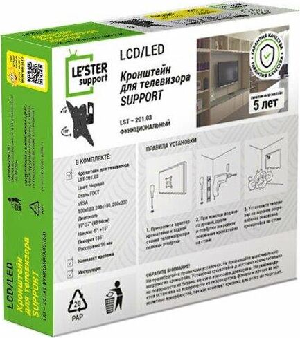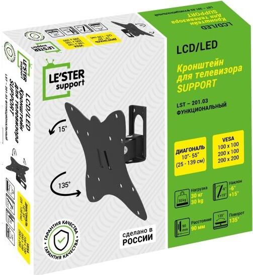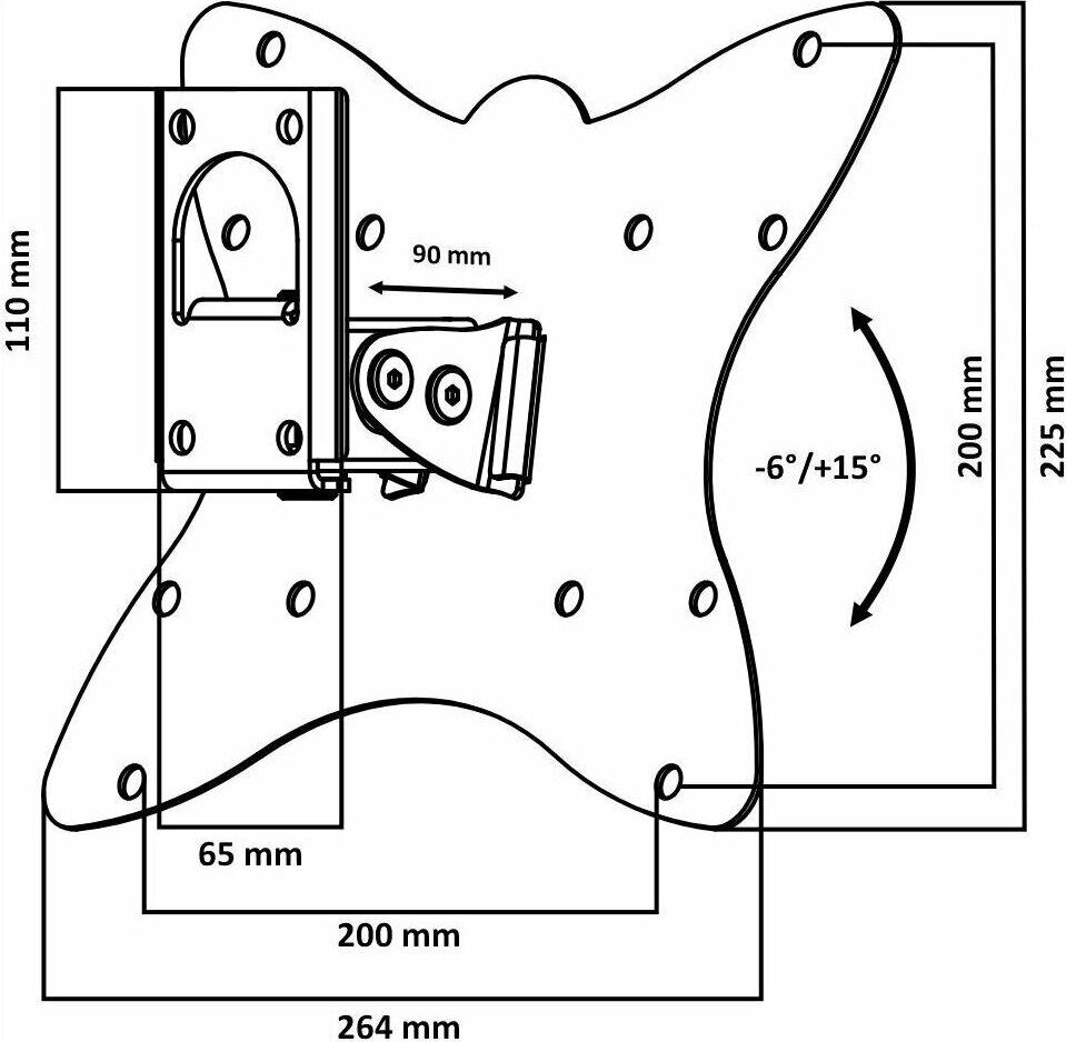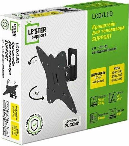 Наклонный-поворотный (Функц) Диагональ: 10"-55" (25-139см) Расстояние от стены: 90 мм Угол наклона: -6°/+18° Угол поворота: 135° Нагрузка: 25 кг Толщина металла адаптера 1,5 мм, основания 3 мм. Регулировка угла наклона и поворота без использования инструмента. Vesa 200*200.