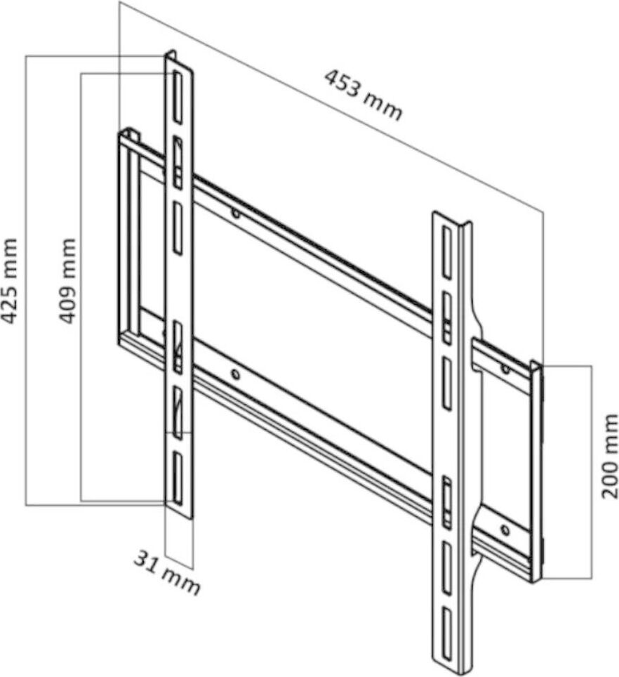 Фиксированный Диагональ: 10"-75" (25-190,5см) Расстояние от стены: 25 мм Нагрузка: 45 кг Толщина металла 1,5 мм. Vesa 400*400.