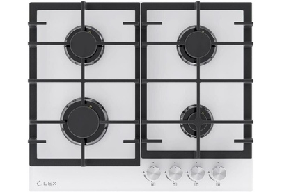 LEX Газовая варочная панель GVG 642A WH, 4 конфорки, закаленное стекло, белый