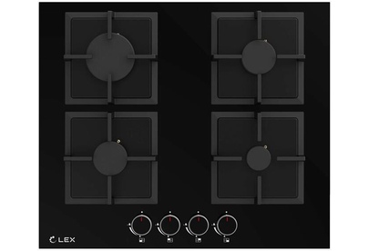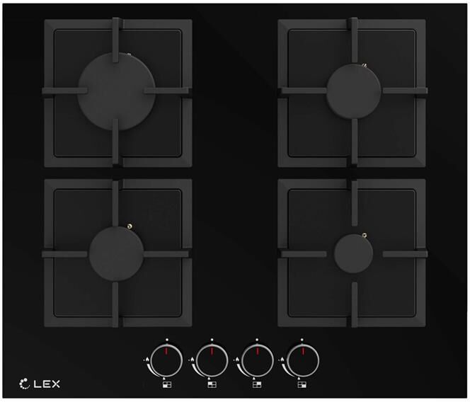 LEX Газовая варочная панель GVG 644 BBL, 4 конфорки, закаленное стекло, черный