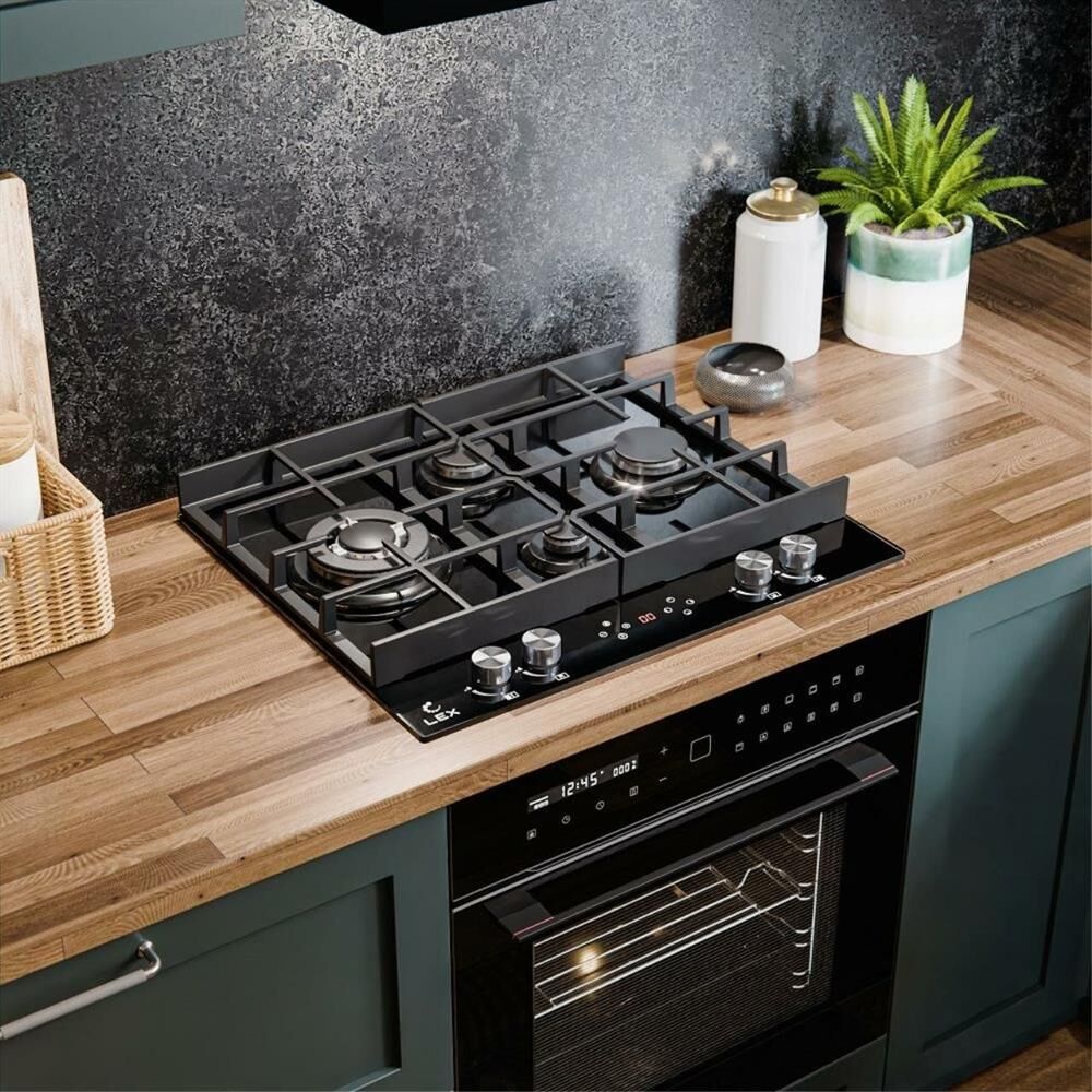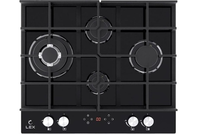 LEX Газовая варочная панель GVG 644 T BL, 4 конфорки, закаленное стекло, черный