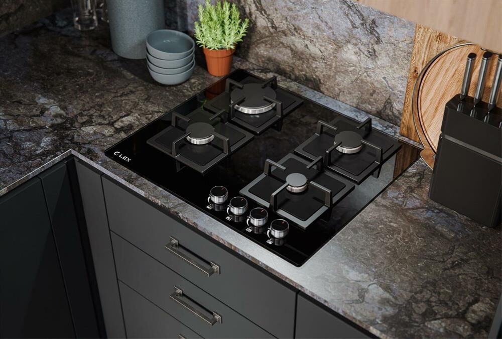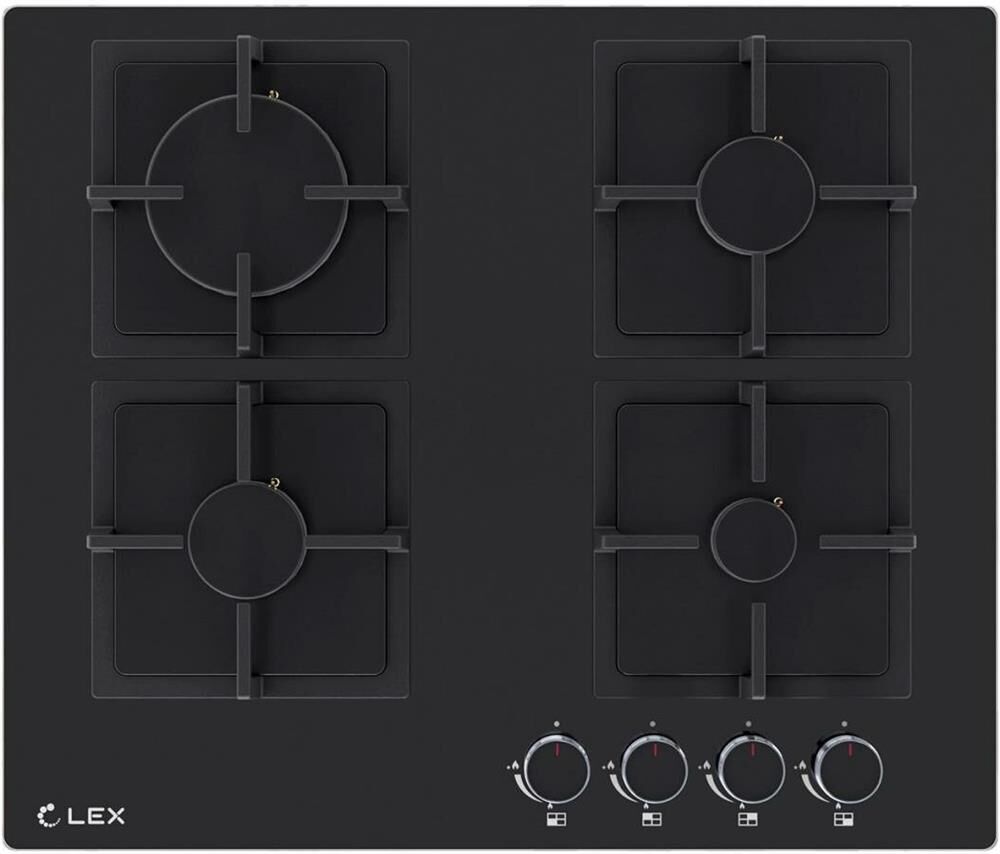 LEX Газовая варочная панель GVG 644A BBL, 4 конфорки, закаленное стекло, черный