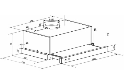 LEX Встраиваемая вытяжка Hide 500, управление кнопочное, нержавеющая сталь [chat000121]