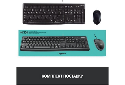 LOGITECH Комплект (клавиатура+мышь) MK120, USB, проводной, с гравировкой, черный [920-002562]