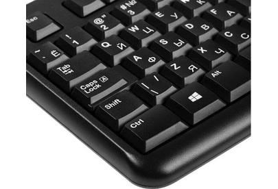 Интерфейс подключения: USB. Тип соединения клавиатуры: проводной. Питание клавиатуры от: по шине. Тип мыши: оптическая. Разрешение сенсора максимальное: 1000. Количество кнопок мыши: 2. Питание мыши: по шине. Длина провода клавиатуры: 1.5. Длина провода мыши: 1.8. Дизайн клавиш: квадратные. Цвет английских букв: белый. Цвет русских букв: белый. Защита от попадания жидкостей: есть. Особенности клавиатуры: Нанесена русская раскладка. Поддержка разрешений: 1000. Дизайн мыши: для правой и левой руки. Цвет клавиш клавиатуры: черный. Комплект поставки: Клавиатура, мышь, руководство. Габариты упаковки (ед) ДхШхВ: 0.52x0.16x0.05. Вес упаковки (ед): 1.18. Клавиатура с русскими буквами: с русскими буквами. Нанесение кириллицы: гравировка. Гарантия: 12 мес.. Цвет корпуса клавиатуры: черный. Цвет мыши: черный и серый. Размеры клавиатуры: 450 х 155 х 23.5 мм. Размеры мыши: 113 х 62 х 38 мм. Органы управления: колесо прокрутки, цифровой блок. Тип соединения: проводной, USB. Мышь: оптическая, 1000 dpi, количество кнопок 2.