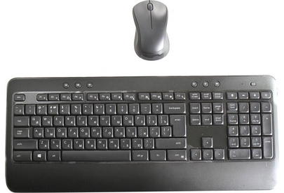 Интерфейс подключения: USB. Тип соединения клавиатуры: беспроводной. Клавиатура Slim-дизайна: да. Питание клавиатуры от: 2xAA. Тип мыши: оптическая. Разрешение сенсора максимальное: 1000. Количество кнопок мыши: 2. Питание мыши: 1xAA. Радиус действия: 10. Мультимедийные дополнительные клавиши: есть. Кнопки, дублирующие клавиши мыши: есть. Дизайн клавиш: квадратные. Цвет английских букв: белый. Встроенный регулятор громкости: есть. Защита от попадания жидкостей: есть. Дизайн мыши: для правой и левой руки. Тип беспроводного соединения: Радио. Габариты упаковки (ед) ДхШхВ: 0.52x0.19x0.05. Вес упаковки (ед): 1.3. Клавиатура с русскими буквами: с русскими буквами. Нанесение кириллицы: оригинальное. Гарантия: 12 мес.. Цвет корпуса клавиатуры: черный. Цвет мыши: черный. Размеры клавиатуры: 457.3 х 193.5 х 24 мм. Размеры мыши: 111.5 х 61.8 х 39.2 мм. Органы управления: колесо прокрутки, цифровой блок. Тип соединения: беспроводной, USB. Питание клавиатуры: 2xAA. Особенности клавиатуры: тонкая клавиатура (слим). Нанесе