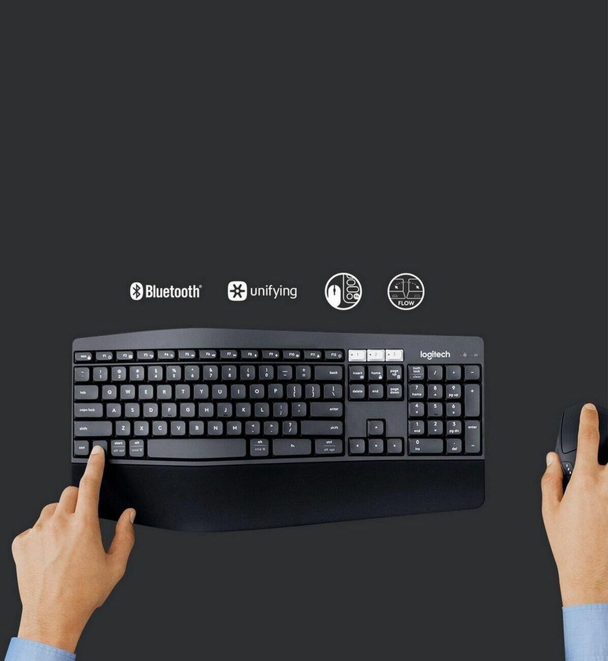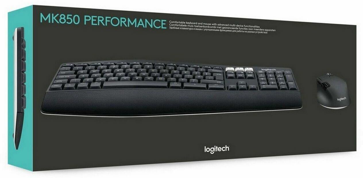 LOGITECH Комплект (клавиатура+мышь) MK850, USB, беспроводной, с гравировкой, черный [920-008486]