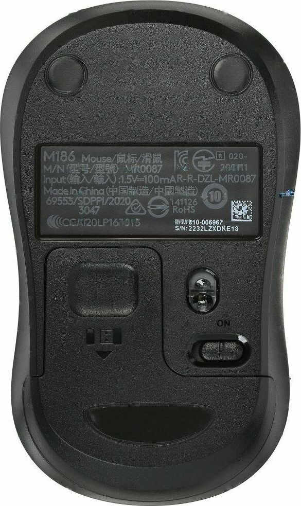 LOGITECH Мышь беспроводная M186, радио, оптическая, USB, 1000dpi, черный и серый [910-004131]