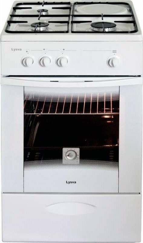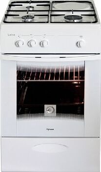 (ШхГхВ) 500х600х840±5 мм.Цвет белый.Масса нетто: 34 кг Газ: природный или сжиженный.Количество горелок: 3 Мощность передней левой горелки: 1.5 кВт Мощность передней правой горелки: 2.3 кВт.Мощность задней левой горелки: 1 кВт Тип духовки: газовая.Мощность газовой горелки пода: 2.3 кВт.Объём жарочного шкафа 57 л.Дверца съёмная с двойным стеклом.Функция «газ-контроль» жарочного шкафа.Подставка для посуды малого диаметра.