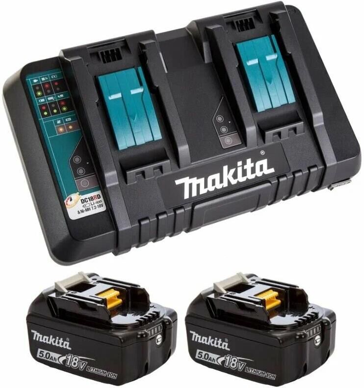 Напряжение: 18. Емкость: 5. Вес: 3740. Тип аккумулятора: Li-Ion. Устройство аккумулятора: Слайдер. Назначение: для электроинструмента. Совместимость: для Makita. Время заряда: 45. Индикатор уровня заряда: ДА. Модель зарядного устройства: DC18RD. Зарядное устройство в комплекте: есть. Количество аккумуляторов в комплекте: 2. Габариты упаковки (ед) ДхШхВ: 0.3x0.21x0.19. Вес упаковки (ед): 1. Гарантия: 12 мес.. Тип аккумулятора: Li-Ion. Устройство аккумулятора: Слайдер. Вес: 3740 грамм. Напряжение: 18 В. Назначение: для электроинструмента. Емкость: 5 Ач