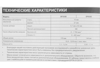 Тип инструмента: Дрель-шуруповерт. Крутящий момент: 30. Крутящий момент (мягкое заворачивание): 14. Количество скоростей: двухскоростной. Число ступеней крутящего момента: 20+1. Наличие функции "сверление": есть. Тип основного патрона: быстрозажимной. Максимальный диаметр сверления (сталь): 10. Максимальный диаметр сверления (дерево): 21. Максимальный диаметр шурупов: 10. Тип электропитания: от аккумулятора. Емкость аккумулятора: 2. Напряжение аккумулятора: 12. Тип аккумулятора: Li-Ion. Встроенный фонарик: есть. Запасной аккумулятор: в комплекте. Жесткий кейс в комплекте: есть. Вес товара: 1.1. Длина инструмента: 179. Высота инструмента: 209. Бесщеточный двигатель: нет. Аккумулятор: в комплекте. Зарядное устройство: в комплекте. Количество аккумуляторов в комплекте: 2 аккумулятора. Габариты упаковки (ед) ДхШхВ: 0.36x0.11x0.29. Вес упаковки (ед): 3. Блокировка шпинделя: есть. Гарантия: 12 мес.. Число оборотов (для 2 скорости): 1700 об/мин. Диаметр основного патрона: 0.8 - 10 мм. Число оборотов: 450 об/мин. Вес