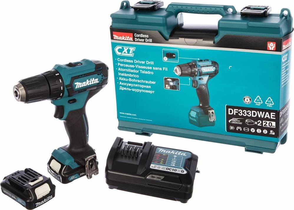 MAKITA Дрель-шуруповерт DF333DWAE, 2Ач, с двумя аккумуляторами