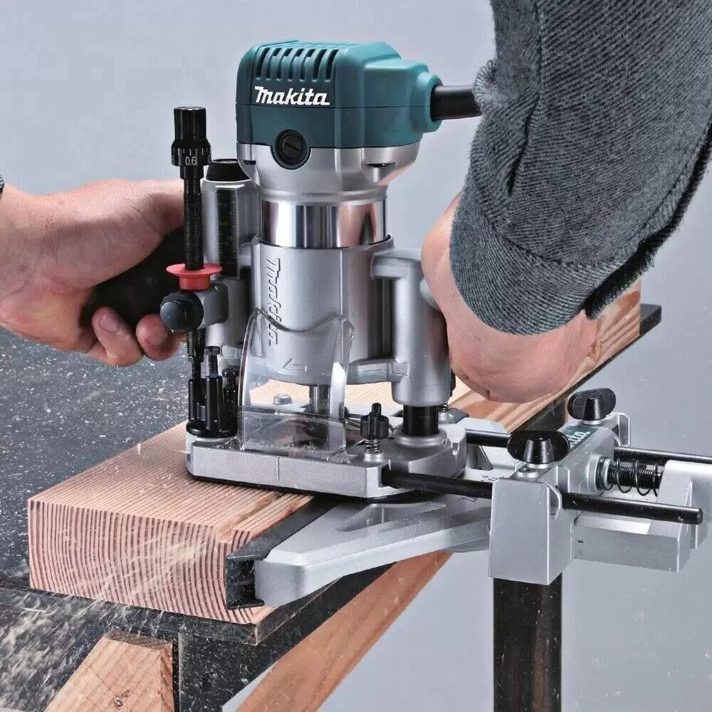 Номинальная потребляемая мощность: 710. Максимальный ход фрезерной корзины: 35. Кол-во патронов в комплекте: 2. Патроны в комплекте: 6 мм / 8 мм. Защитный кожух: отсутствует. Встроенная подсветка: отсутствует. Патрубок для системы пылеудаления: есть. Вес товара: 1.8. Особенности: Функция антирестарт, ключи, цанга (763636-3) 6 мм и (763618-5) 8 мм, прямая направляющая, кромочная подошва.. Комплектация: Фрезер, цанга 6 мм и 8 мм., ключи, параллельная направляющая, адаптер всасывающий, систейнер Makpac, кромочная круглая подошва, наклонная подошва, погружная подошва, боковая ручка.. Плавный пуск: есть. Регулировка оборотов: есть. Тип электропитания: от электросети. Габариты упаковки (ед) ДхШхВ: 0.44x0.33x0.33. Вес упаковки (ед): 2.58. Тип электрического двигателя: щеточный. Гарантия: 12 мес.. Размеры (ШхВхГ): 89 х 210 х 89 мм. Число оборотов холостого хода: 10000 - 30000 об/мин. Рабочий ход фрезы: 35 мм. Число оборотов: 10000 - 30000 об/мин. Патроны в комплекте: 6 мм / 8 мм. Тип электропитания: от электросети. Н