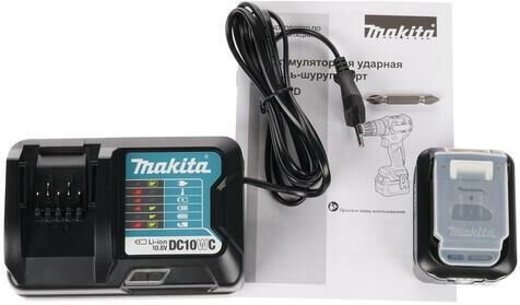 Тип инструмента: Ударная дрель-шуруповерт. Крутящий момент: 35. Крутящий момент (мягкое заворачивание): 21. Количество скоростей: двухскоростной. Число ступеней крутящего момента: 20+1. Тип основного патрона: быстрозажимной. Максимальный диаметр сверления (сталь): 10. Максимальный диаметр сверления (дерево): 28. Максимальный диаметр шурупов: 5.1. Тип электропитания: от аккумулятора. Емкость аккумулятора: 4. Напряжение аккумулятора: 10.8. Тип аккумулятора: Li-Ion. Запасной аккумулятор: в комплекте. Жесткий кейс в комплекте: есть. Особенности: Компактная ударная дрель-шуруповерт с бесщеточным двигателем и улучшенной защитой от пыли и влаги.. Вес товара: 1.1. Длина инструмента: 168. Высота инструмента: 217. Комплект поставки: Аккумуляторная дрель-шуруповерт, 2 аккумулятора 4.0 А*ч, зарядное устройство, бита, чемодан.. Аккумулятор: в комплекте. Зарядное устройство: в комплекте. Количество аккумуляторов в комплекте: 2 аккумулятора. Габариты упаковки (ед) ДхШхВ: 0.35x0.1x0.28. Вес упаковки (ед): 1.1. Гарантия: 12 м