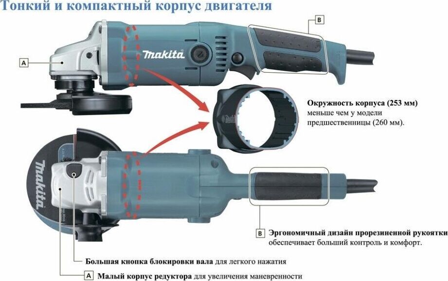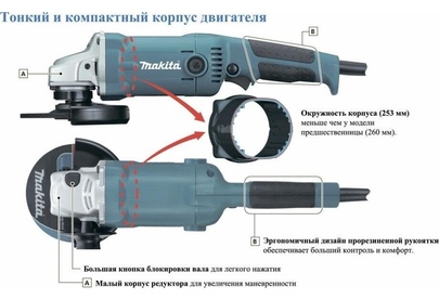 MAKITA Углошлифовальная машина GA5021C 1450Вт 10000об/мин рез.шпин.:M14 d=125мм
